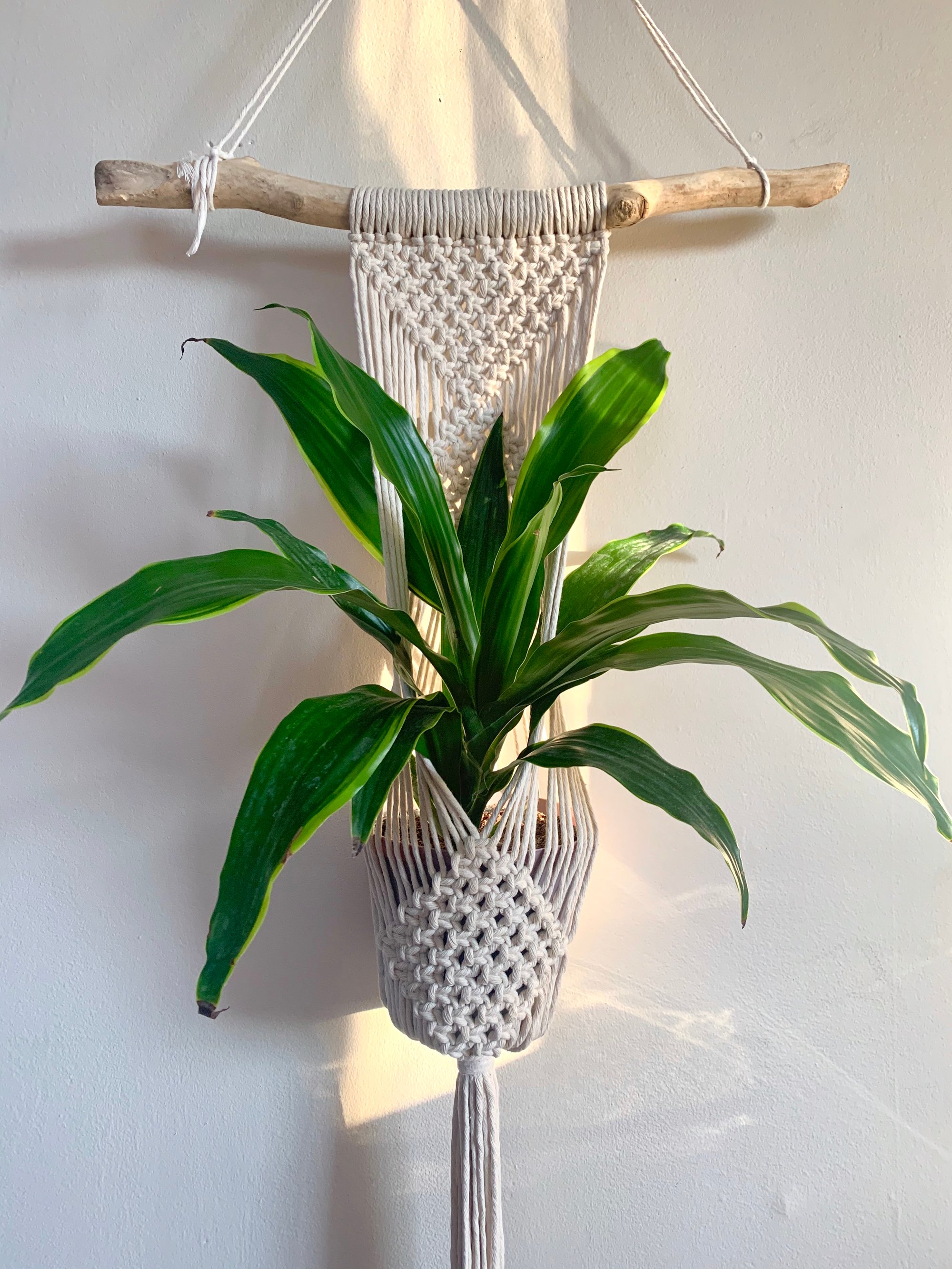 This amazing plant holder is sure to brighten up any plant lovers home. This particular plant holder hangs from a piece of driftwood found near a local river. Please note: each piece of wood listed has been thoroughly cleaned.
